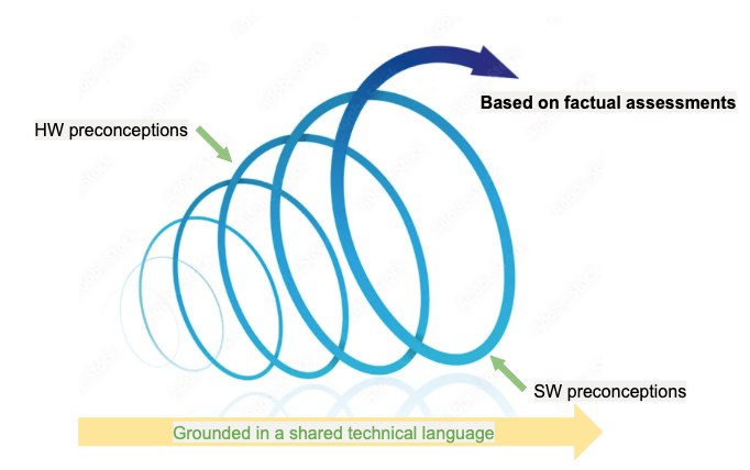 Resolving ambiguous software-hardware issues demands intensive and continuous dialectical communication. This process mirrors a fast-paced table tennis match, where ideas must be exchanged dynamically, or it can be likened to Hegel’s dialectical spiral, where iterative discussions drive toward a conclusive root cause and solution. Often, these conversations align with Jean-François Lyotard’s concept of preconceptions in postmodern philosophy. In Lyotard’s grand narratives, universality is a modern concern, while differences define postmodern discourse. Identifying and discussing these differences at the outset is critical. Unlike subjective value judgments, these preconceptions should be based on factual assessments, forming the foundation for structured viewpoints. From a hermeneutic perspective, viewpoints are constructed upon preconceptions, making it impossible to pursue truth and solutions without fully articulating them. This process, grounded in a shared technical language, is essential for problem-solving in any engineering case.