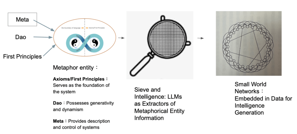 This paper continues the theoretical framework of our previous work, “LLM as Language Sieve: Extracting Information Epiphytic/Parasitic/Symbiotic in Data to Generate Intelligence," by integrating Small World Network theory to propose a novel LLM information processing mechanism. Through the three-tiered architecture of Meta-Dao-First Principles, we argue how LLMs, through a language sieve mechanism, extract epiphytic/parasitic/symbiotic information from complex data and achieve intelligent generation within a Small World Network structure. This research provides a new theoretical perspective for understanding the information processing capabilities of AI systems.