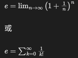 - 定義:$e \approx 2.718281828…$是一個無理數,也是數學上稱為「自然對數的底(base of natural logarithm)」。