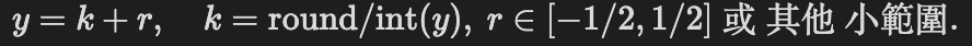 - 將 y 做 range reduction:拆成整數部份 k(要放到 exponent)和小數部份 r(放到尾數逼近):