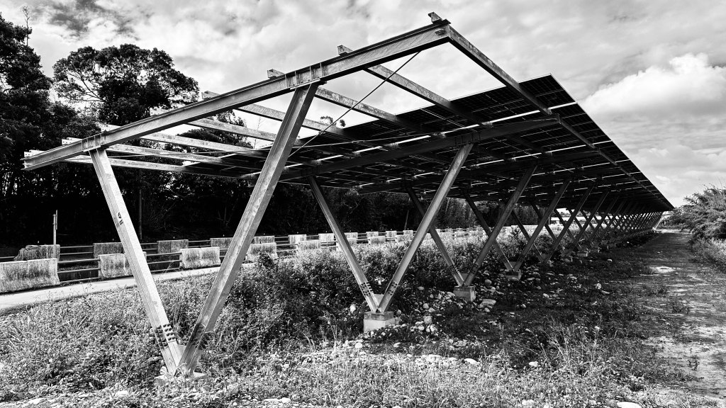 當我們提到「陰影」,語義上往往帶有某種負面的象徵:那是光無法抵達的地方,是被遮蔽、被忽視的角落,是人心的隱秘與不安所在。語意上,「陰影」不僅是物理現象,更是一種心理隱喻——它指向脆弱、恐懼、記憶的重量。然而,若我們將視角轉向建築與空間的語言,「陰影」卻反轉了意象的方向。它不再是遮蔽光的對立,而成為「光的延伸」。建築中的陰影,創造了涼爽、庇護與節奏;它在酷熱的陽光下構築出人可棲身之所,也讓光得以被「看見」。因此,「陰影」在空間中蘊含著一種溫柔的保護,是建築與自然之間的對話語彙。就如同這張照片中鋼構支架下的大片陰影,不是壓抑的象徵,而是一種存在的節制——在光與暗之間,陰影讓我們學會如何安放自己。